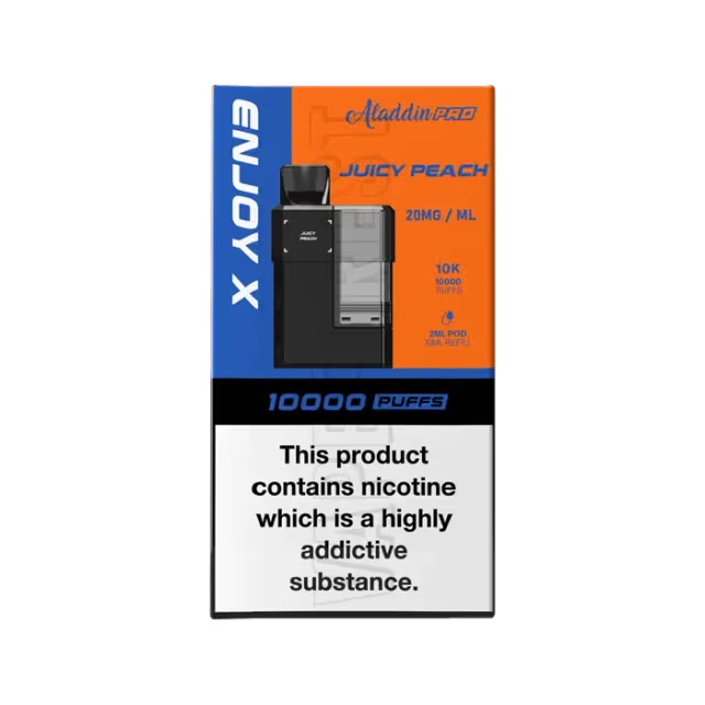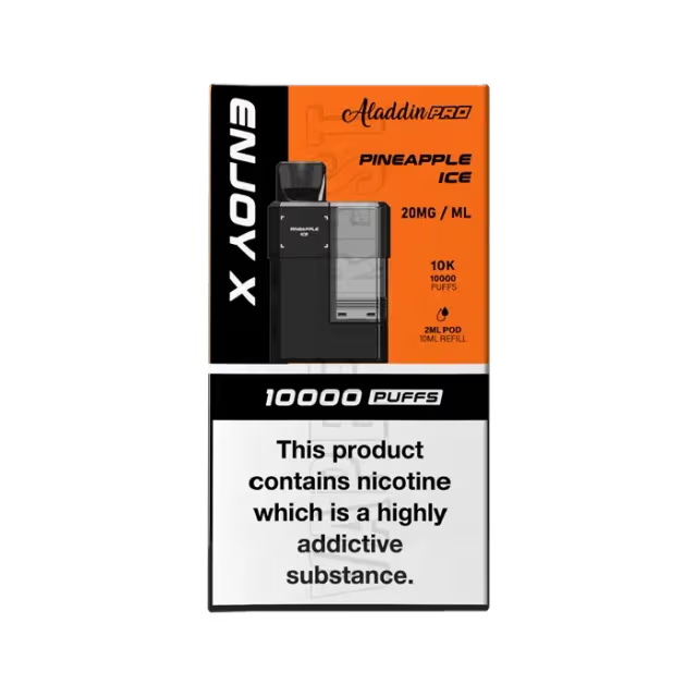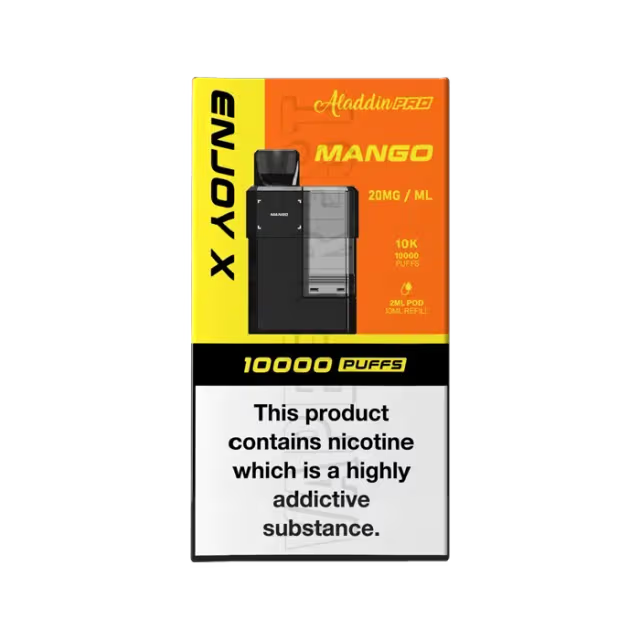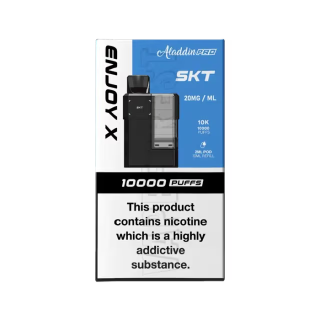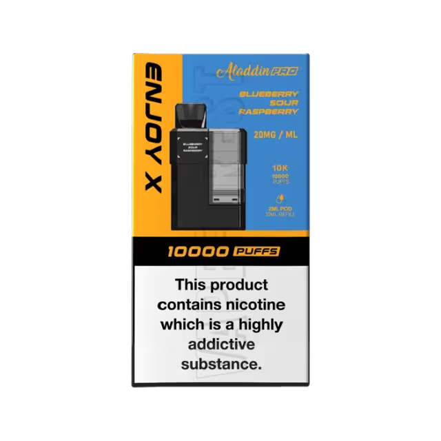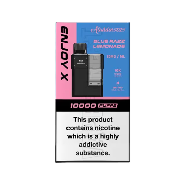 Experience premium vaping with the Aladdin Pro Enjoy X 10000 Prefilled Pods – your ultimate choice for convenience and exceptional flavor. Each box contains 5 high-quality prefilled pods designed to deliver up to 10,000 puffs of pure satisfaction.