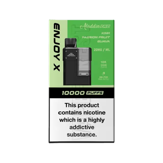 Perfect for both experienced vapers and those new to prefilled pod systems, the Aladdin Pro Enjoy X 10000 offers unmatched convenience without compromising on quality. Simply insert, vape, and enjoy – no refilling, no mess, no fuss.