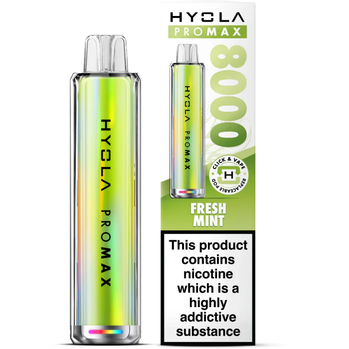 If you want a device that is more affordable and environmentally friendly than disposable vapes, the Hyola Pro Max 8000 is a great choice. It is a reusable huge puff kit. A full charge should last most vapers a whole day because to the longer-lasting 800mAh built-in battery, which can be recharged in less than an hour. This kit comes with a 2ml pod and an 8ml refill container that are both prefilled with a 20mg nic salt e-liquid, and it can produce up to 8000 puffs. To continue using your gadget once your e-liquid runs out, simply get a new Hyola Pro Max 8000 refill pack.